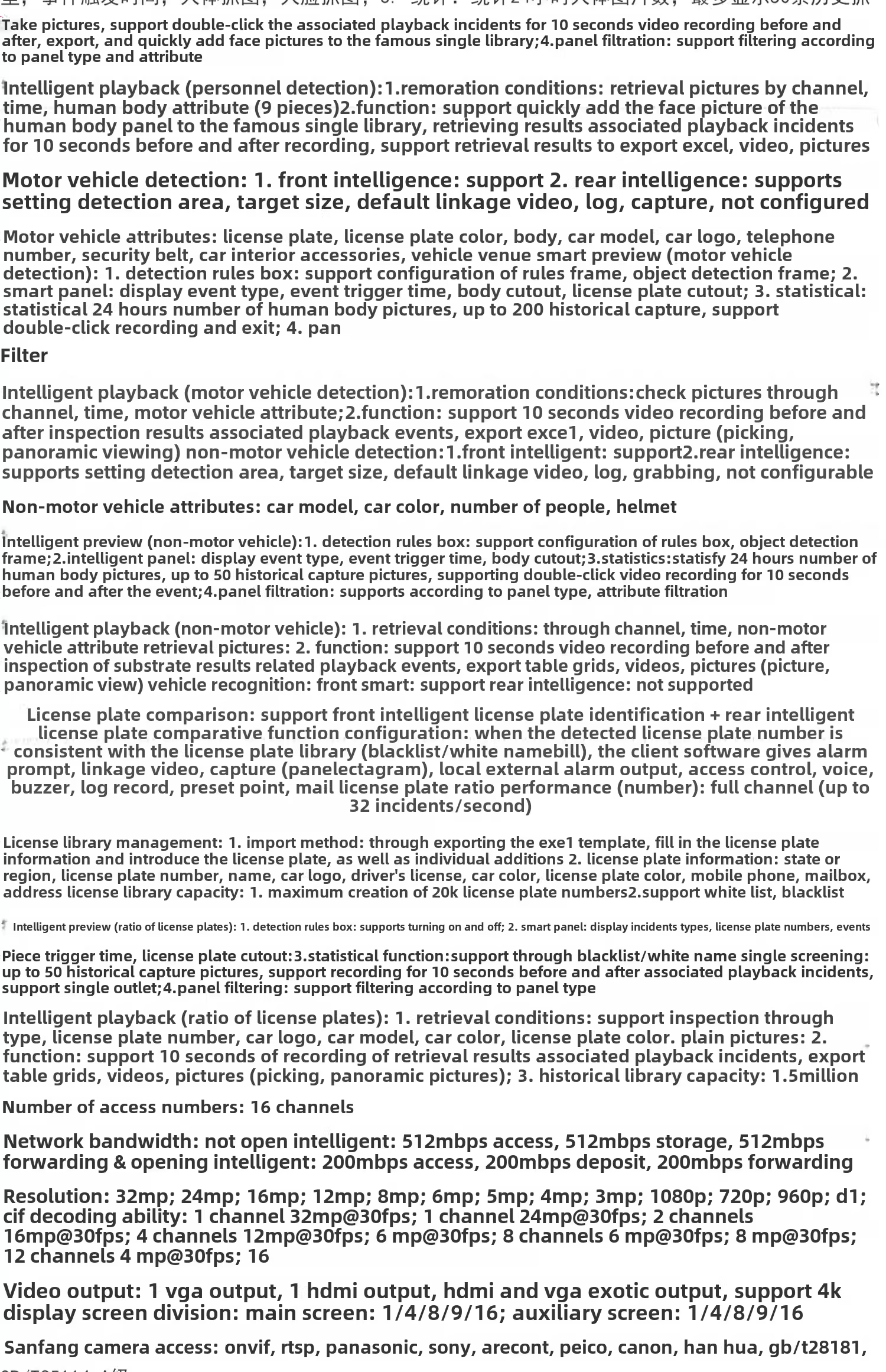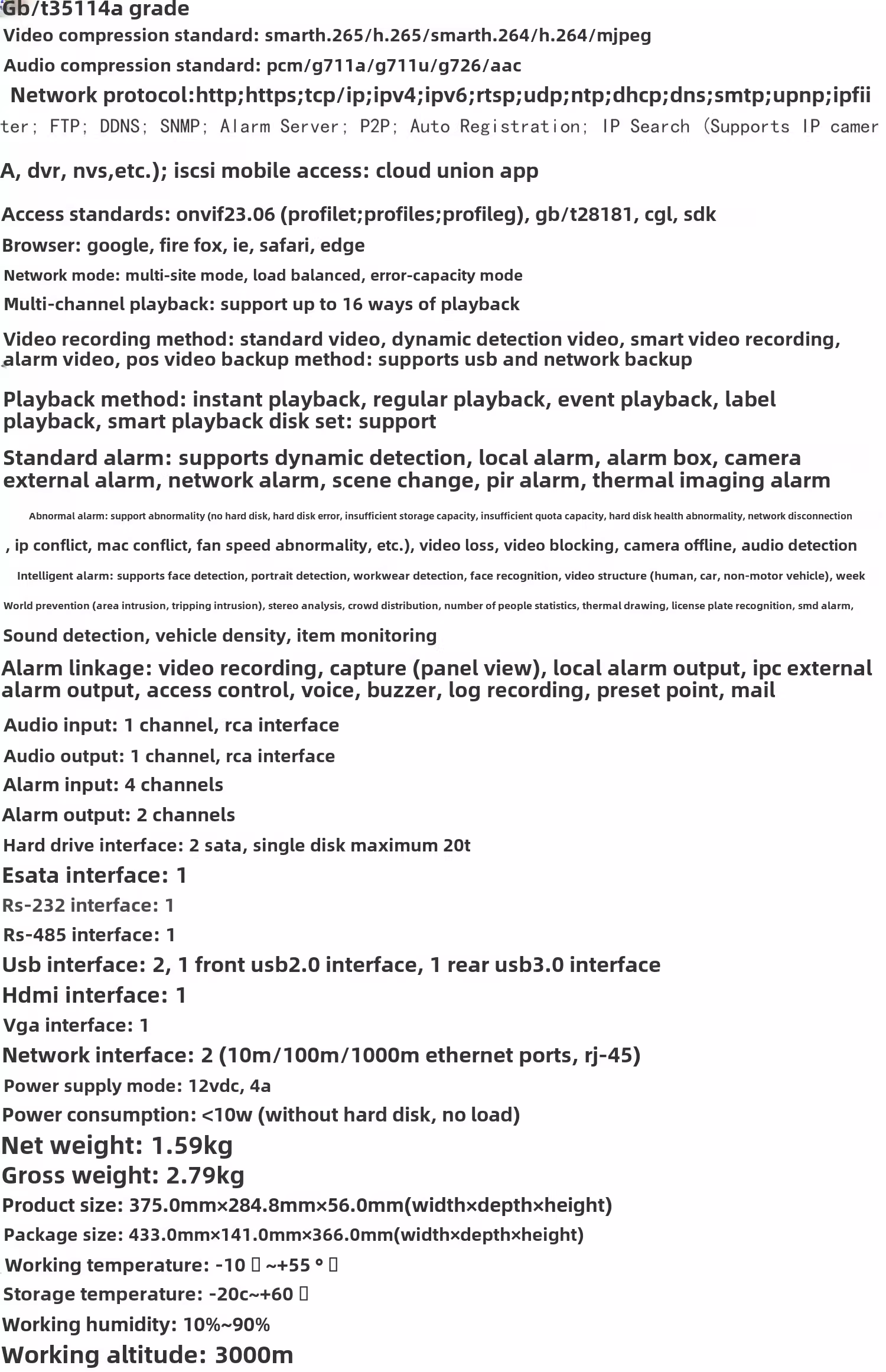 This video recorder supports 16 input channels, which means it can connect up to 16 cameras at the same time, covering a wider range and ensuring no blind spots in monitoring.In addition, it is equipped with two hard drive slots, supporting a maximum hard drive capacity of 8tb, allowing users to flexibly expand storage space according to their actual needs.The dual network port design provides higher network stability and transmission speed, ensuring timely upload and download of data even during busy network times.