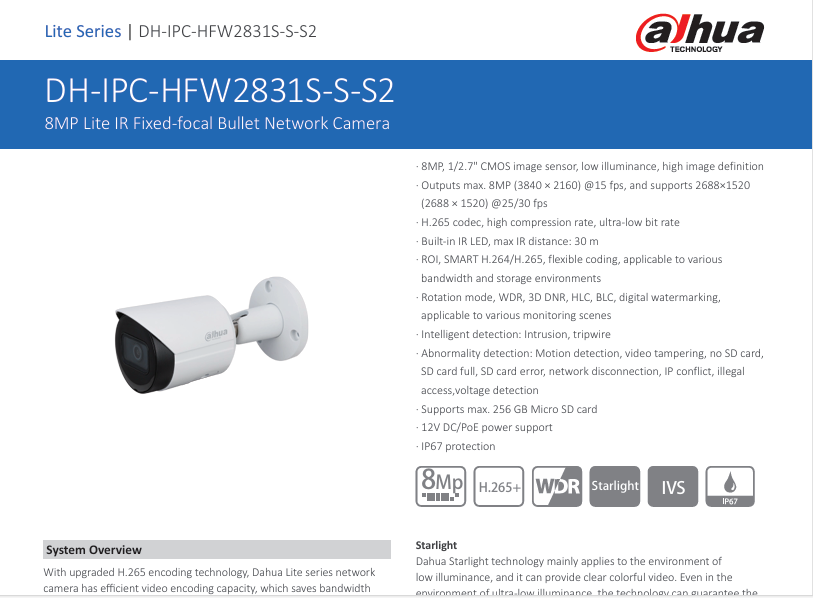 > Micro SD memory, IP67, PoE